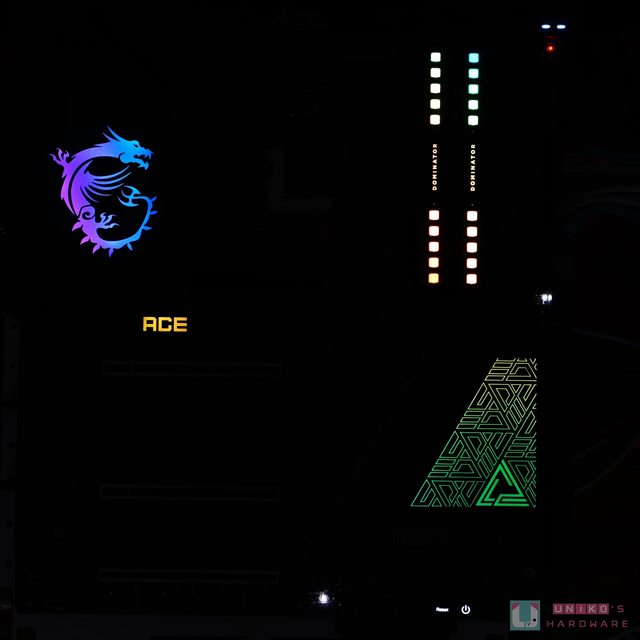 Z790 ACE MAX 的光效分布在供電與晶片組散熱器上方,RGB 還能完美呈現出漸變色,喜愛