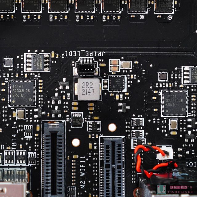 2 顆 ASMEDIA ASM1468 PCI-E 3.0 X2 通道中繼器晶片,負責由 Z790 晶片組至 JHL8540