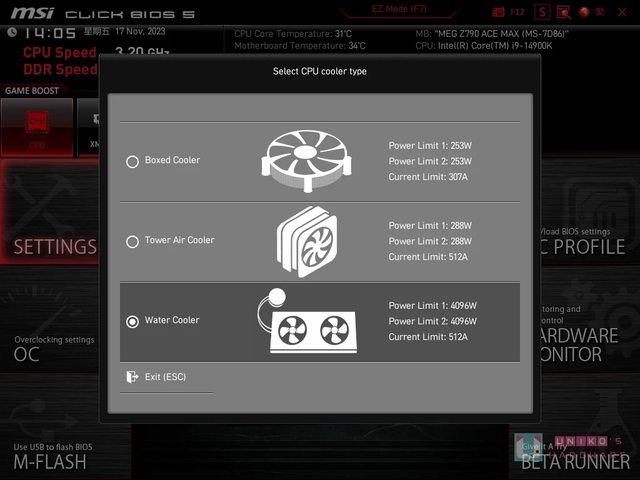 你的散熱器類別,分別控制了功耗和電流。有一般盒裝原廠散熱器、塔散、一體式水冷散熱