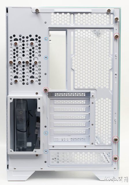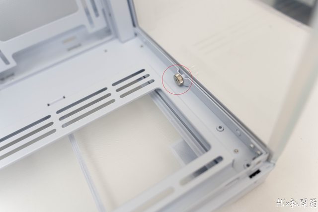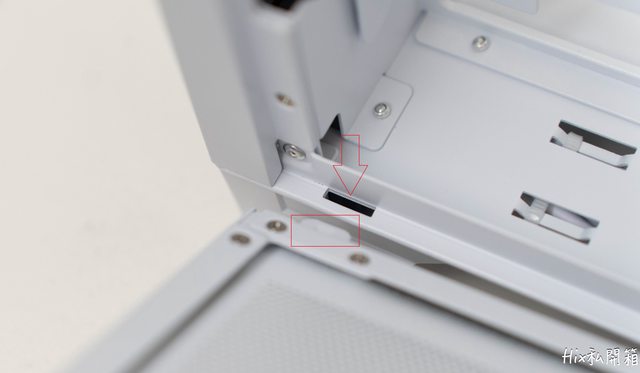 主板托盤在內部這邊有一顆螺絲要鬆開,以及機殼後方的手擰螺絲鬆開(前幾張圖有提到)