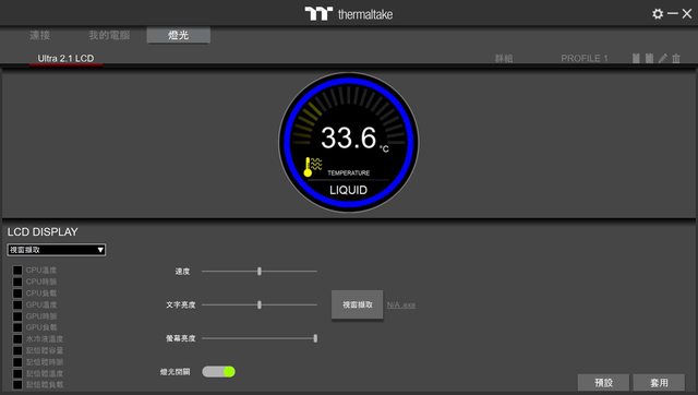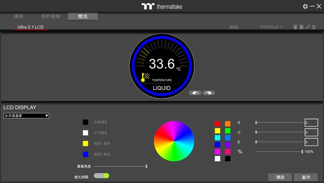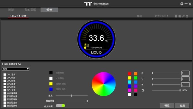 成功開機後會顯示目前水冷液的溫度