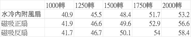 散熱能力排名為磁吸正扇>磁吸反扇>水冷排內附的風扇