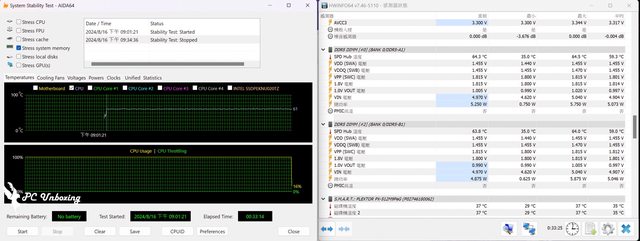 ↑無風扇進行 AIDA64 system memory 溫度測試,SPD Hub 最高為 64.5°C