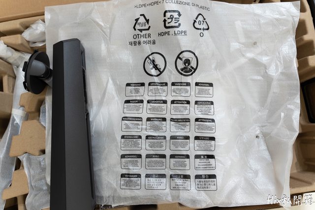 和其他螢幕一樣,白色泡綿袋上方有警語(禁止小孩拿來套頭)