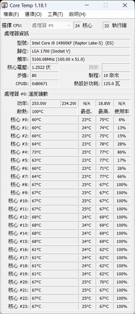 溫度簡測 14900KF PL1 $250W