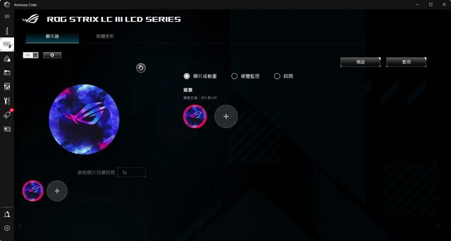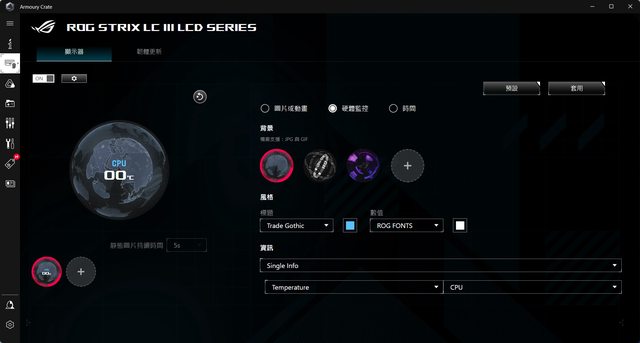 搭配Armoury Crate可以控制水冷的圖案以及更改顯示方向等