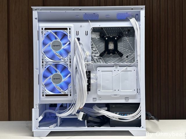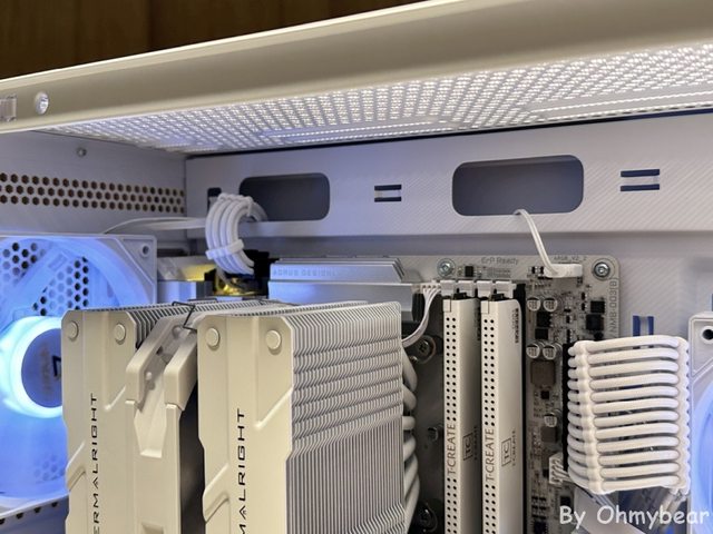 後方預裝一顆120mm正向扇葉風扇排風,頂部空間有稍微抬高,安裝厚冷排沒問題。