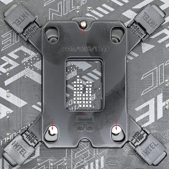 ▼安裝於Intel LGA1700/1200/115x平台時需使用Intel背板,金屬製背板四個角有可調整