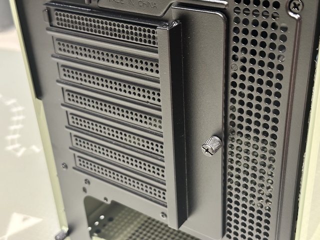後方有遮蓋螺絲鎖孔的檔板,但可惜除第一槽PCI-E外都是一次性檔板。