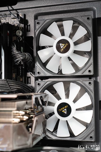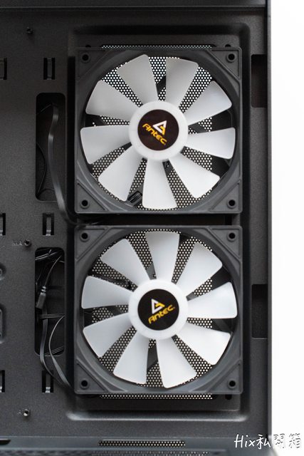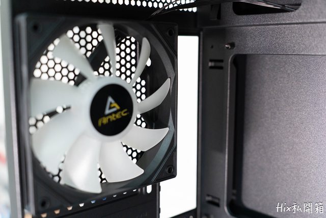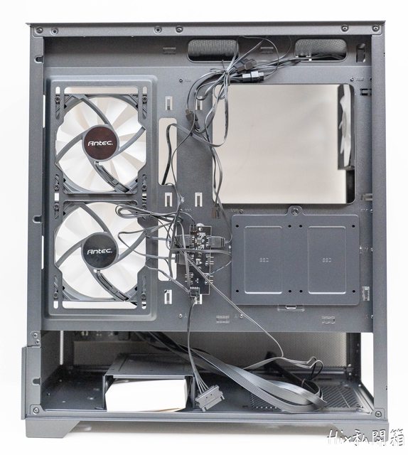 背部打開後的一覽圖,風扇並無特別標註型號,只有ANTEC的貼紙