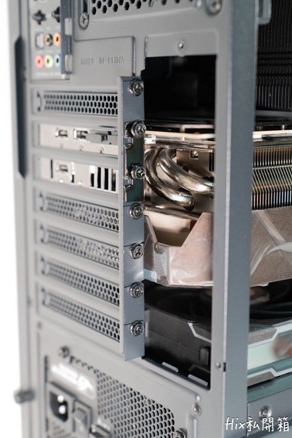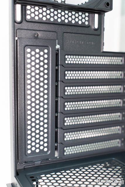 看到機殼後I/O端,7槽PCIE槽,擋片可重覆使用