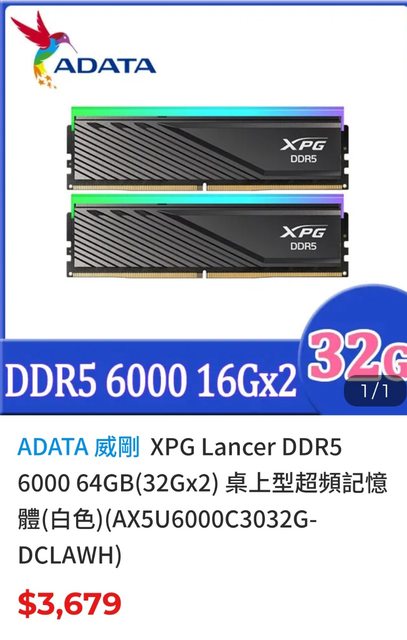 → Zein: 就圖片文字不符 寫64G 32Gx2寄來32G 16Gx2 124.218.70.73 09/04 15:23