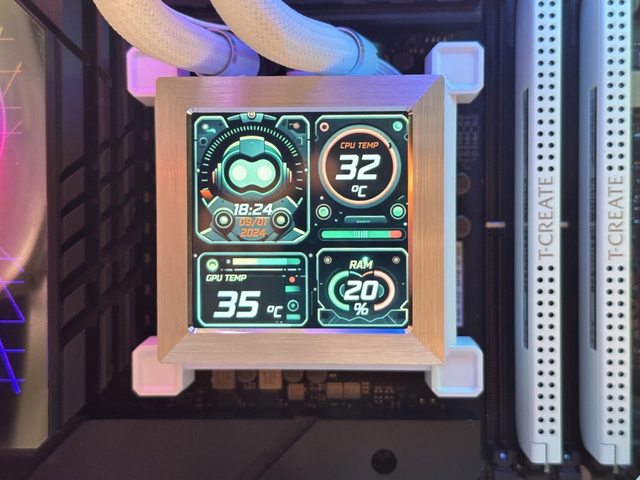 Hydroshift LCD 360R冷頭配有2.88吋螢幕,具備IPS面板、480*480解析度、500尼特亮度