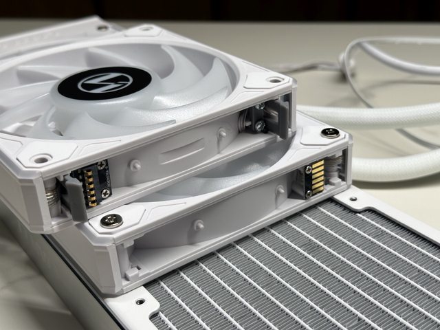 Hydroshift LCD 360R版本搭配3顆模組化ARGB風扇,一樣採用接線隱藏設計。風扇、水冷