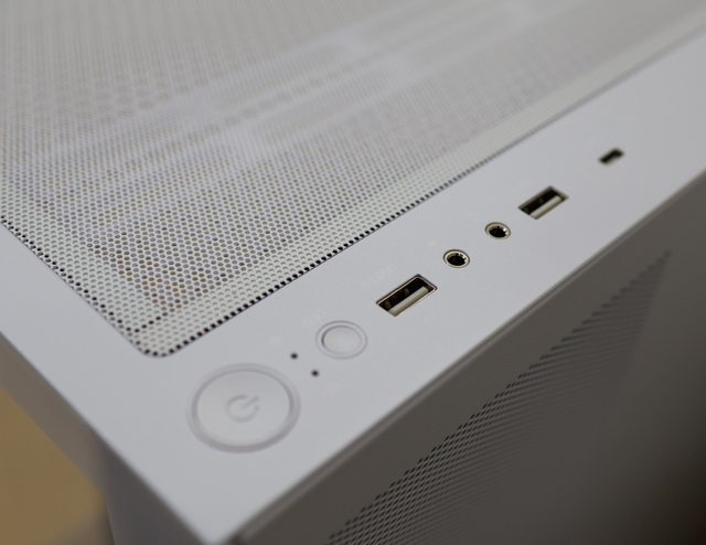 上方配置I/O:Power開關/燈控/USB3.0 x 2 + TYPE-C *1 ).耳機麥克風孔