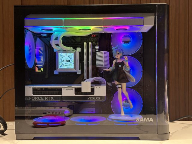 久違地(?)再把老婆擺上去,HydroShift LCD 360R沒有水冷管的阻礙,模型真的能隨便