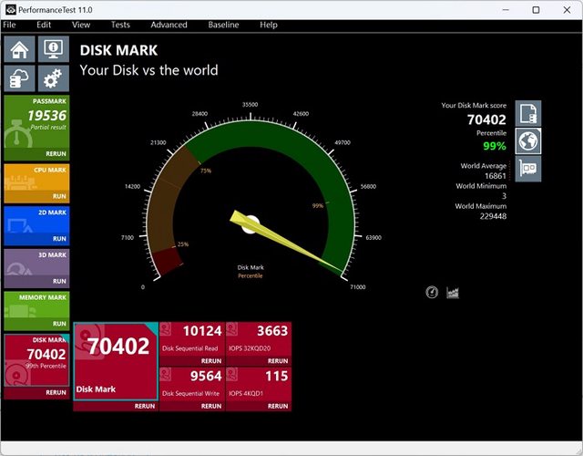 每秒達到8767MB/s讀取 9189MB/s寫入,相當快速