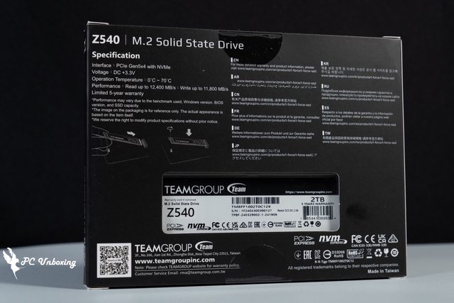 這次要用來當作測試對象的是 T-FORCE Z540 M.2 PCIe Gen5 x4 SSD 2TB,容量型號上有
