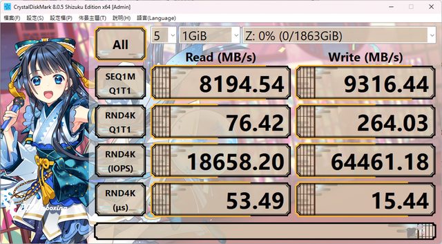 測試硬碟:T-FORCE Z540 M.2 PCIe Gen5 x4 SSD 2TB (格式化空碟)