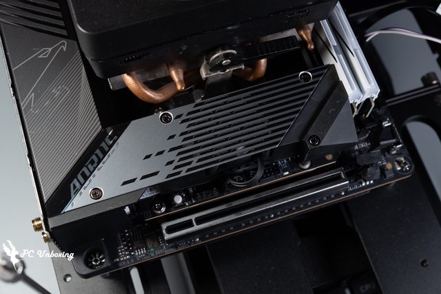 且搭配顯示卡使用,顯示卡運作的廢熱往上排熱時,位於顯示卡樓上的鄰居 M.2 SSD 散