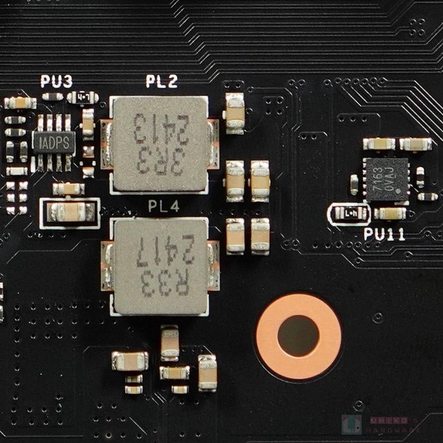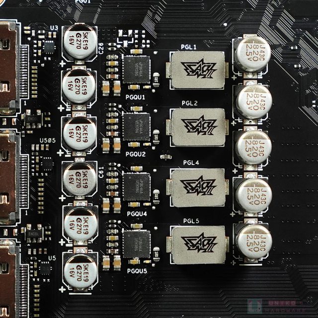 ‧ 核心的右邊有一組同樣負責核心電壓的供電設計,使用同款供電模組和電容。