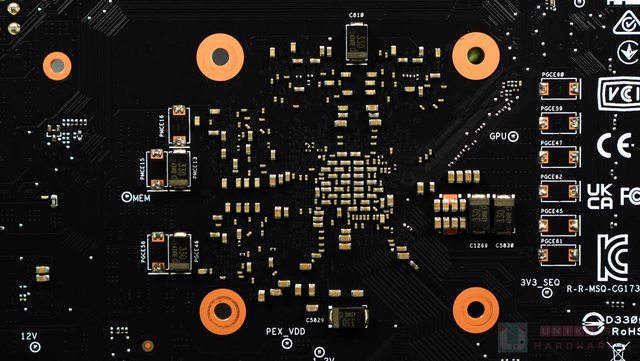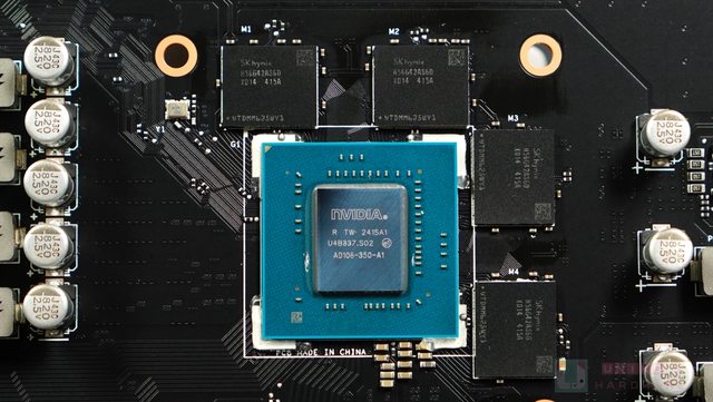 ‧ 核心是 AD106-350-A1,四角有封膠處理,另伴隨 4 顆 SKHYNIX GDDR6 晶片。