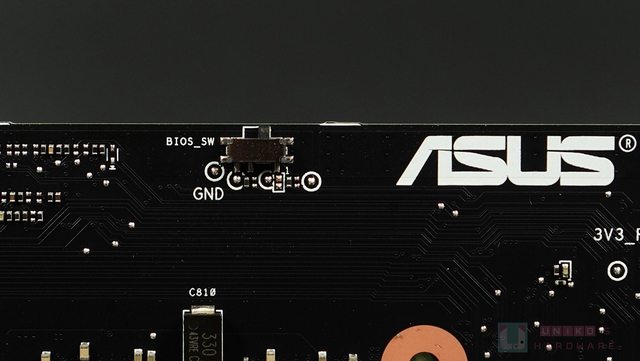 ‧ PCB 頂部有實體的 BIOS 兩檔切換,預設是 P 模式,提供更強散熱;Q 模式調整風扇曲