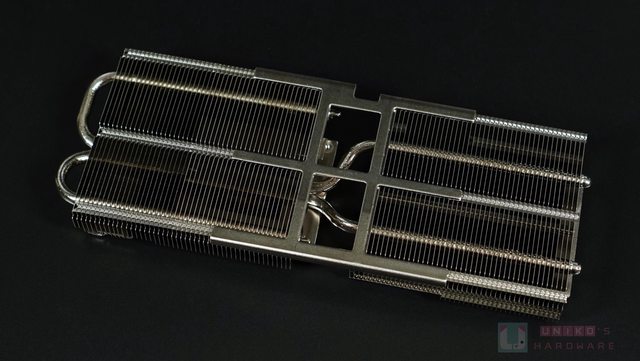 ‧ 散熱器主體由 2 組散熱鰭片和 2 根熱導管以及小銅片構成。