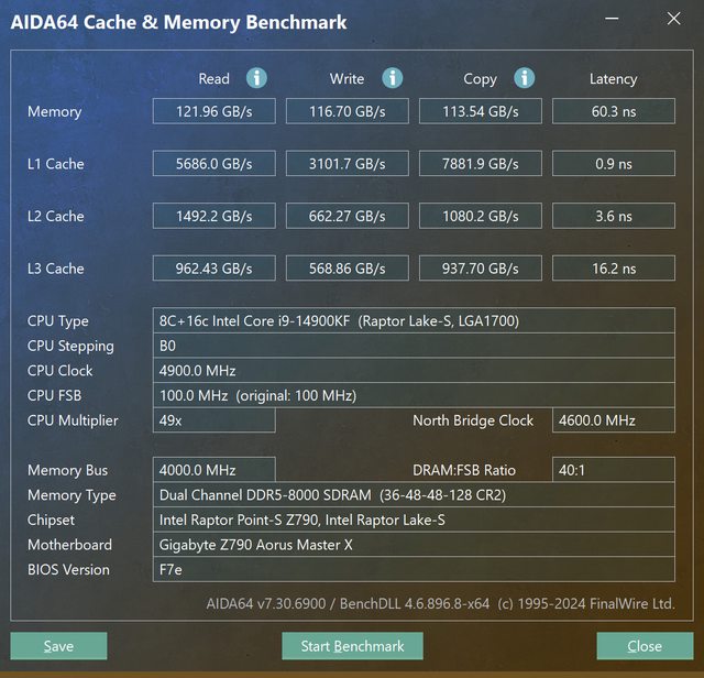 讀取121.96GB/s寫入116.70GB/s延遲60.3