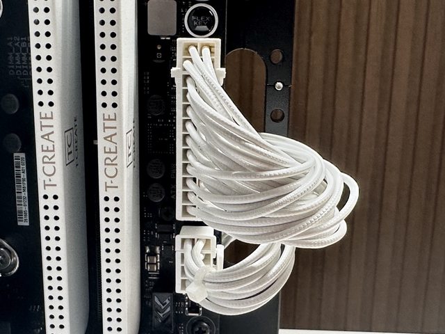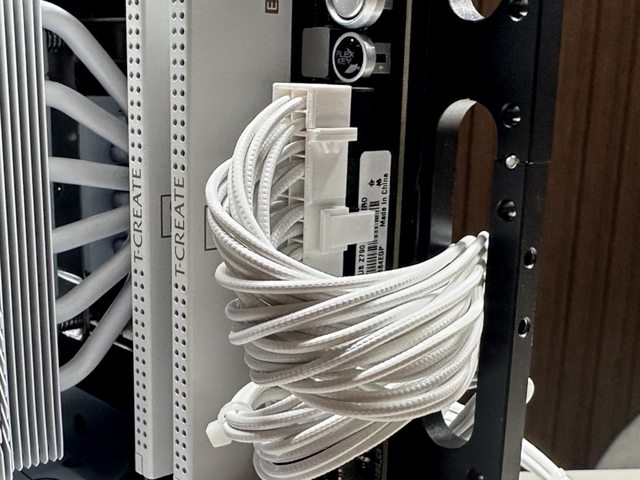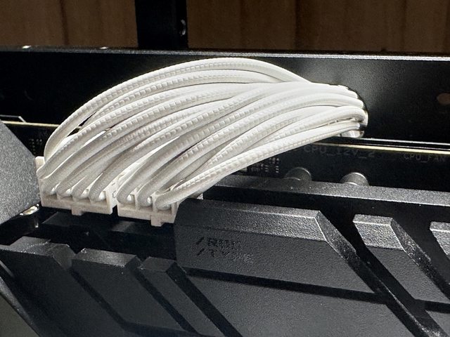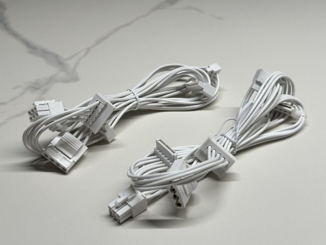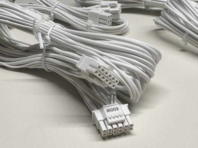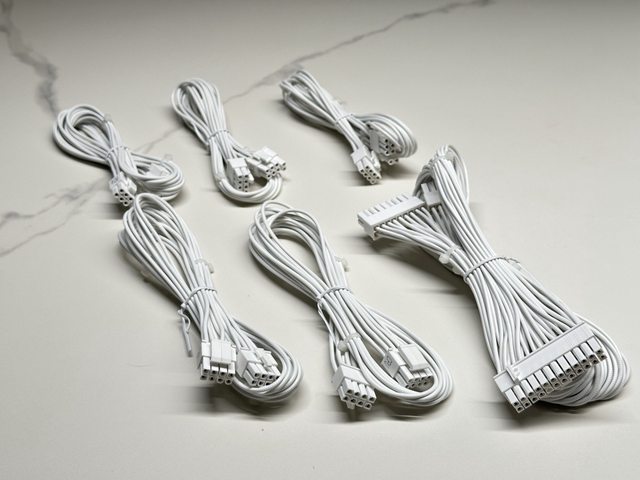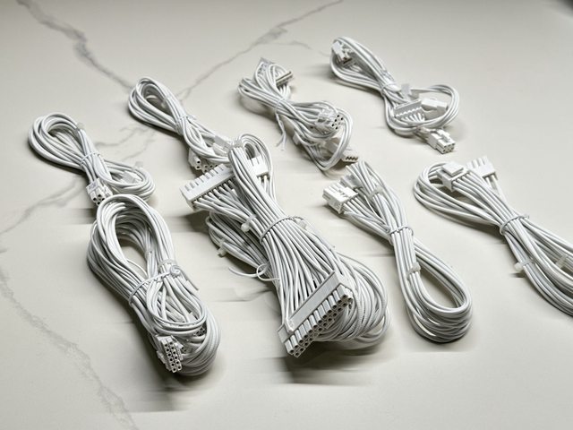 配置全白(含接頭)壓紋線線材,共有主機板24P一條、CPU 4+4P兩條、PCI-E 6+2P三條、