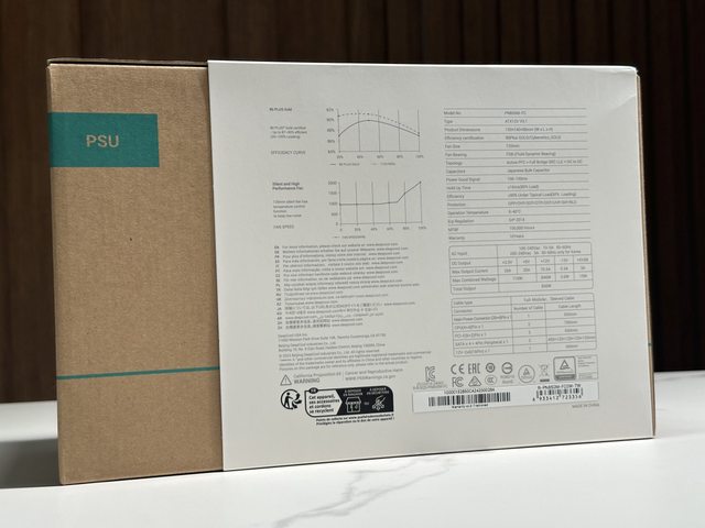 背面標示轉換效率曲線、噪音曲線及硬體規格,這部分之後搭配官網資訊再說明。