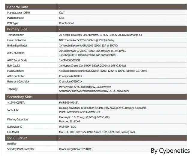 首先是各元件用料,清楚標示廠牌及規格,製造商是CWT,屬於中階規格的GPX系列,並且