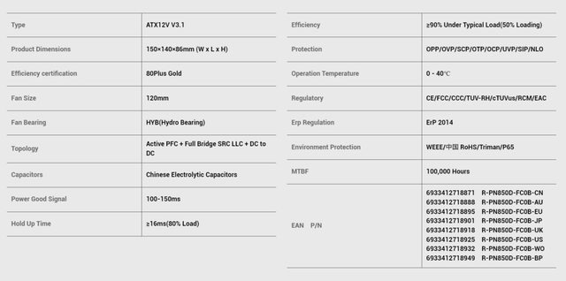 本篇開箱的PN850M WH型號應該算容易辨認,可判斷屬於80+金牌等級PN-M全模組化系列電