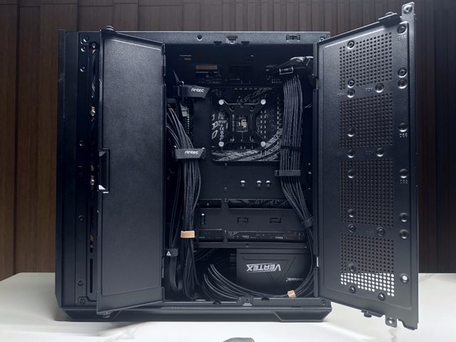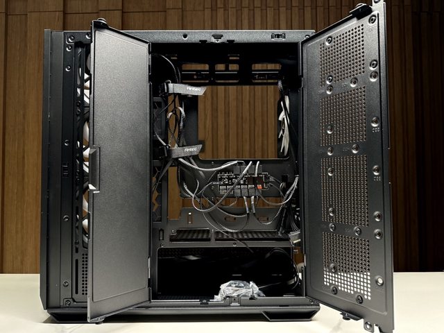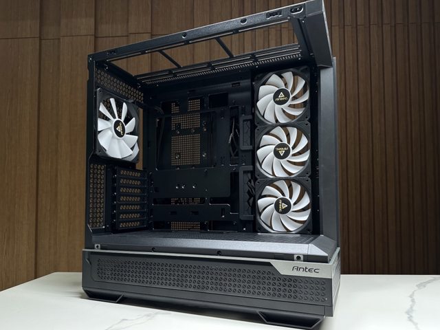 設計及用料對得起售價,也是市面上少數單艙架構但配置側邊3顆120mm風扇的全景機殼,
