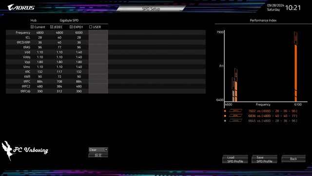 在主機板的 BIOS 中,可以看見這組記憶體內建一個 Profile 設定檔,DDR5 6000 MT/s