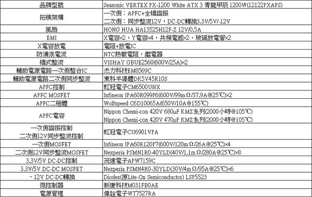 ○APFC電容使用Nippon Chemi-con,其他固態/電解電容使用Nippon