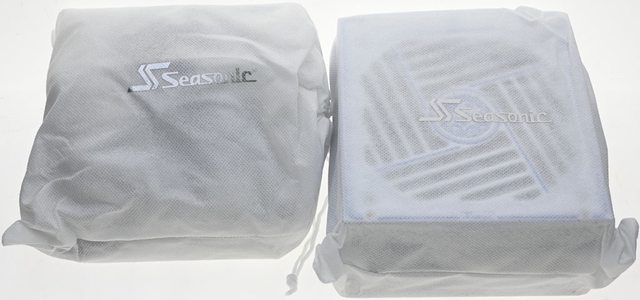 ▼包裝內容,電源本體及模組化線組分別裝在印有商標的白色不織布束口袋內