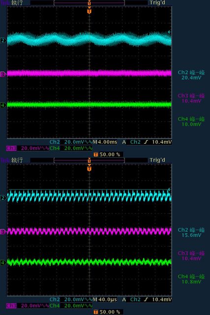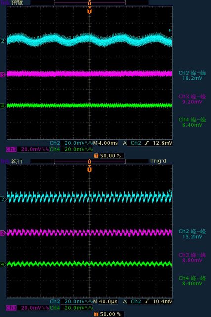 20.4mV/10.4mV/10mV,於純12V全負載輸出下12V/5V/3.3V各路低頻漣波分別為