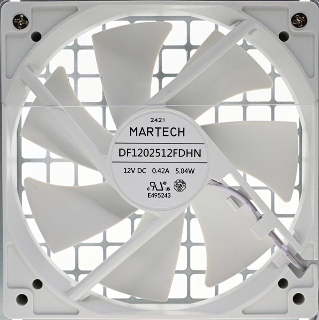 ▼採用白色MARTECH DF1202512FDHN 12V/0.42A風扇,並設置氣流導風片