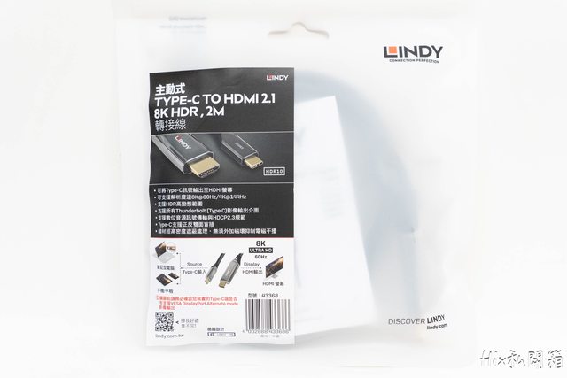 分別是林帝LINDY 主動式Type-C TO HDMI 2.1 8K HDR轉接線(代號43368)