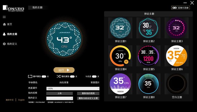 連接USB後搭配專用軟體可切換8種佈景主題及自定義主題,顯示即時監控資訊及自訂靜態