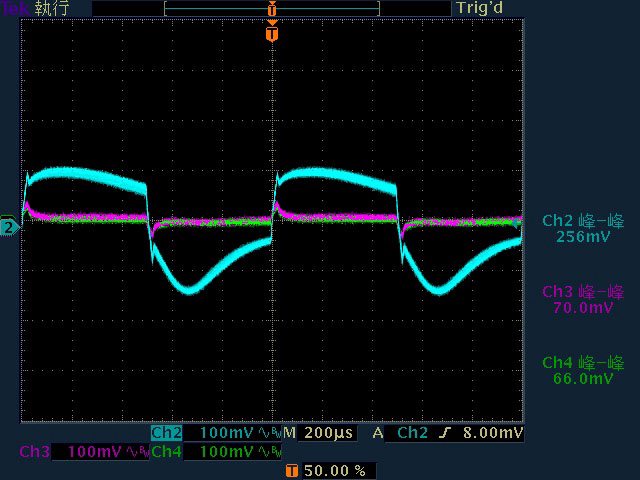 負載輸出下12V/5V/3.3V各路低頻漣波分別為15.2mV/10mV/8.8mV