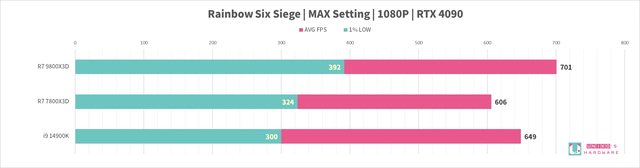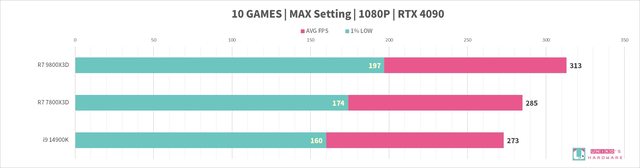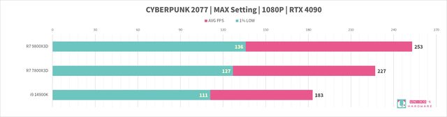 遊戲測試對比處理器為 R7 7800X3D、i9 14900K。