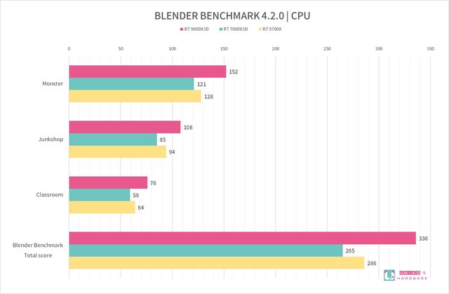 非遊戲測試對比處理器為 R7 7800X3D、R7 9700X (65W)。