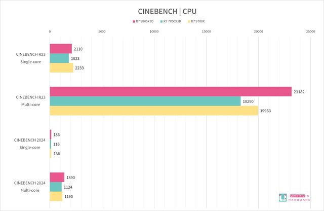 Cinebench R23、Cinebench 2024 是一個使用 CPU 做渲染的測試軟體,有單核心和多核心