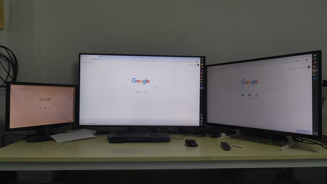 : 目前主螢幕是一台40吋霧面電腦螢幕,副螢幕是43吋鏡面電視,桌深85cm