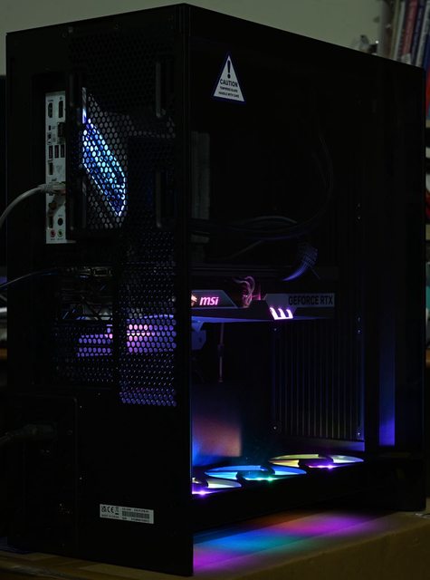 ▼機殼版F360 RGB Core單框3扇葉發光風扇裝在底部的燈光效果圖