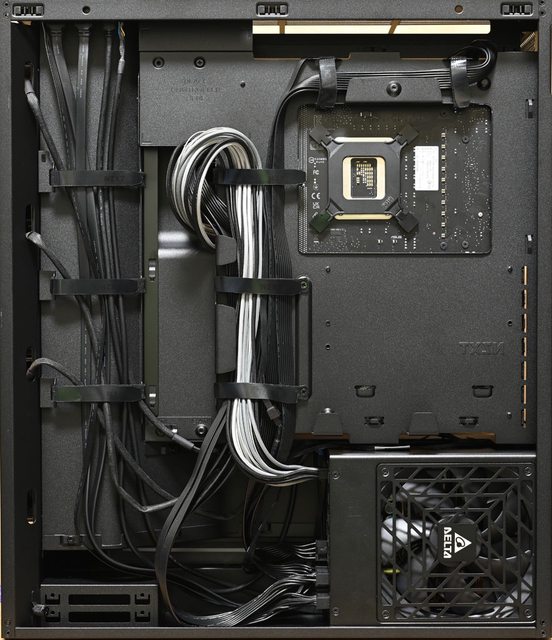 ●調整電源安裝方向,架高底部通風口,對顯示卡提供充足氣流,並在右側板增加通風口