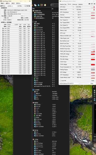 ▼CPU+GPU高負載30分鐘後Core Temp、GPU-Z感測器、AIDA64感測器頁面