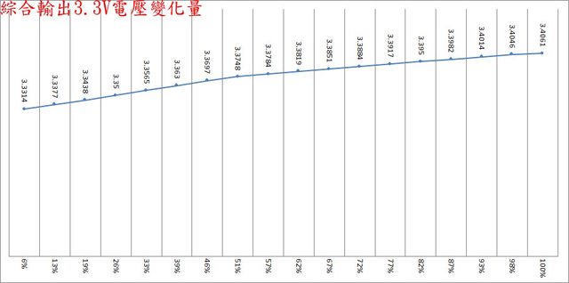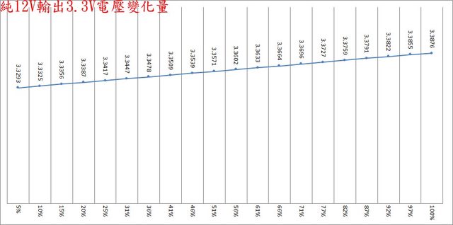○偏載測試,12V維持空載,測試3.3V滿載、5V滿載、3.3V/5V滿載的3.3V/5V/12V電壓變